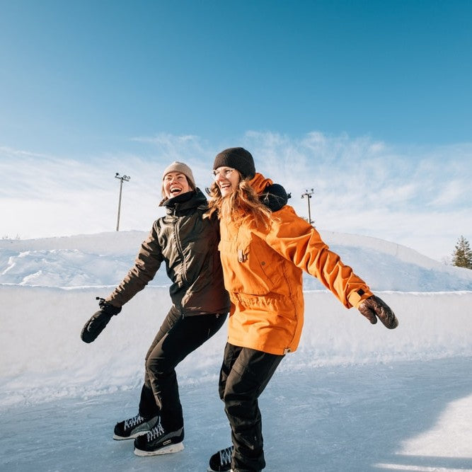 You can borrow skates on-site, as ice skates are included in the price of the ticket.